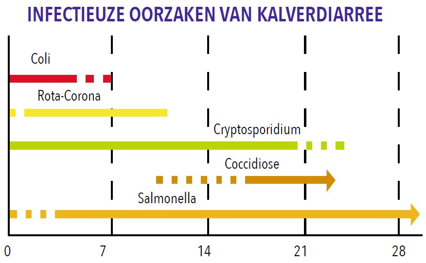 Naast de aanwezigheid van crypto worden ook vaak het rota- en coronavirus en E-coli aangetroffen in ingestuurde monsters. Volgens een woordvoerder bij MSD, komt vooral de combinatie van crypto en het rotavirus in Nederland vaak voor bij pasgeboren kalveren die lijden aan diarree. Beide ziekteverwekkers slaan toe - evenals het coronavirus - vanaf vijf tot 21 á 28 dagen na de geboorte.