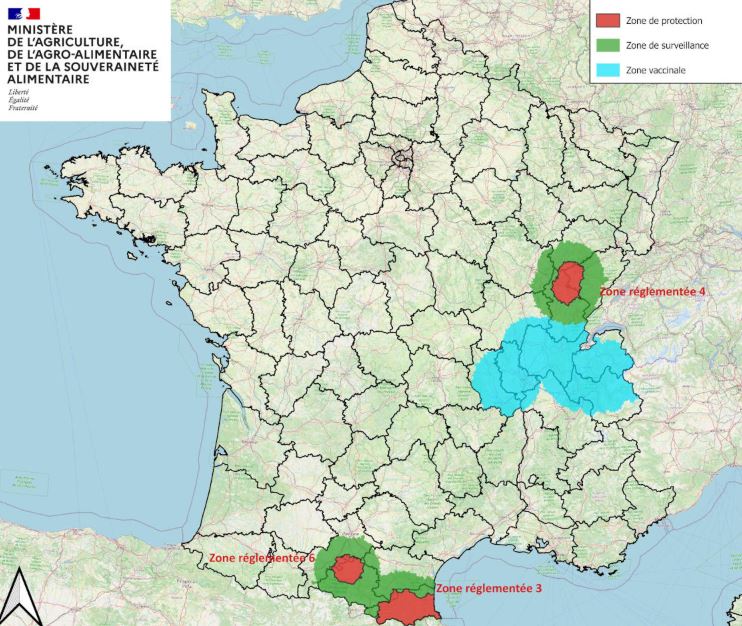 De Franse landbouwminister Annie Genevard heeft laten weten dat de recente uitbraken (naast de Pyreneeën ook nog een uitbraak in de beschermingszone in de Jura) een zorg zijn en waarschijnlijk het gevolg van dierenbewegingen, waarvan sommige illegaal. Onverantwoord individueel gedrag heeft volgens haar daardoor enorme gevolgen voor de hele groep boeren in het gebied. Daarom gaat ze de controles verder verscherpen en komen er zware straffen bij niet-naleving van de regels, waaronder boetes en geen compensatie door de overheid voor het ruimen van de dieren als infecties voortkomen uit verboden gedrag.