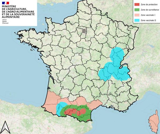 De LSD-epidemie in Frankrijk lijkt zich te ontspannen. Na het opheffen van de laatste beperkingszone in het oosten van Frankrijk, is nu ook het eerste gebied in het zuiden vrijgegeven. Het betreft een klein gebied rondom Tarbes en Lourdes in de departementen Gers, Pyrénées-Atlantiques en Hautes-Pyrénées.